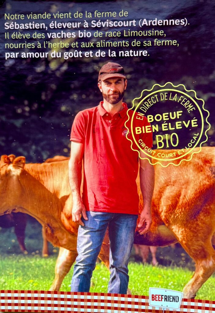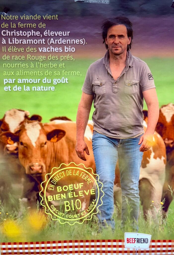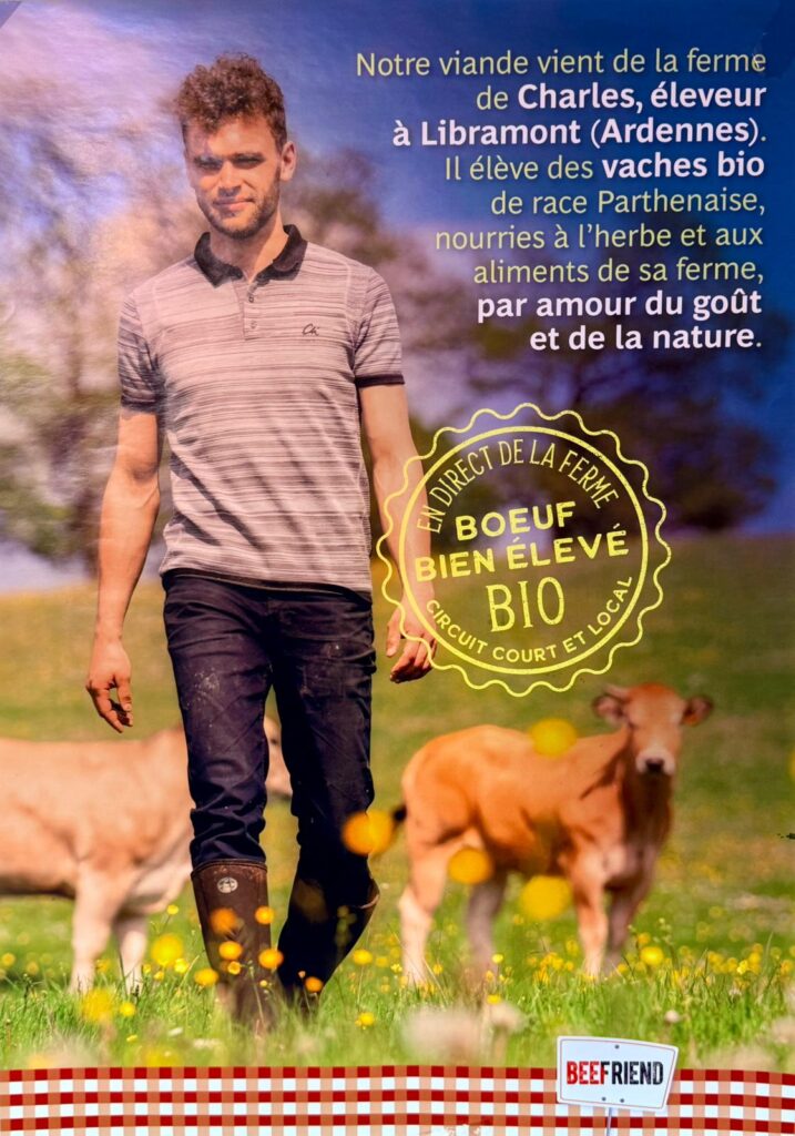 Notre viande provient de fermes familiales engagées dans une agriculture biologique et respectueuse de l’environnement. Charles, à Libramont, élève des vaches de race Parthenaise ; Sébastien, à Seviscourt, élève des Limousines ; et Christophe, également à Libramont, s’occupe de Rouge des Prés. Tous trois partagent la même passion : offrir une viande de qualité en nourrissant leurs animaux à l’herbe et aux aliments de leur propre ferme, pour préserver le goût authentique et la nature.